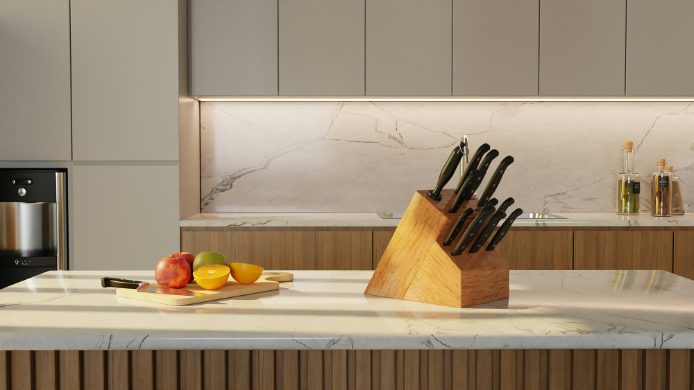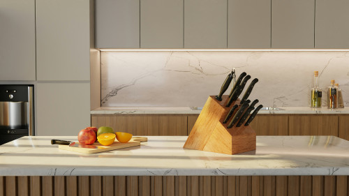 Minuet Santhee tåler maskinopvask, hvilket gør rengøringen enkel. Det skinnende ydre giver et elegant udtryk, der passer ind i både moderne og klassiske køkkener.